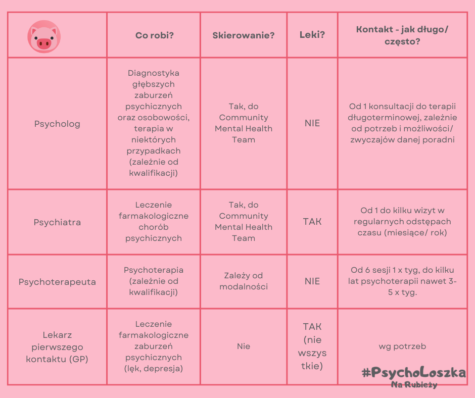 Mam nadzieję, że dzięki temu podsumowaniu łatwiej jest Wam zrozumieć, kto się czym zajmuje w ochronie zdrowia psychicznego.